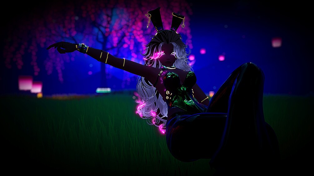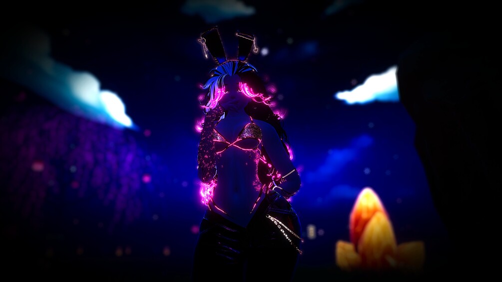 Skinshirt, Bunnysuit, Collar, Cuffs, Fishnets, Sleeves, Bunny ears, Pants, Shoes, Trails, Flow toys, Pole, Hues, Skintones, Lighting, Emissions